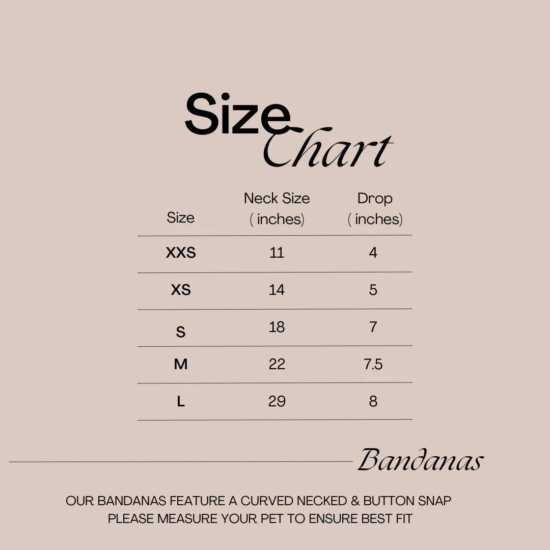Please measure your pets neck to ensure the best fit. Bandana can be tied and then snapped for a custom fit.