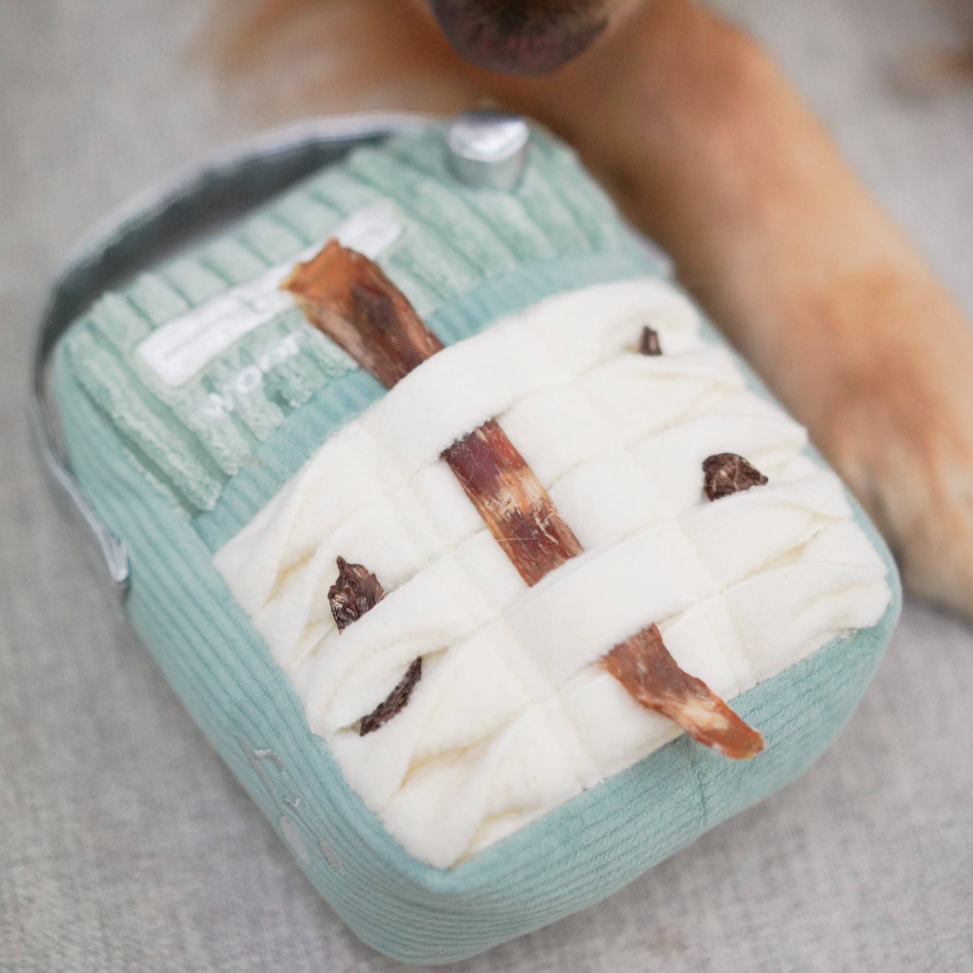 It’s a toy that keeps dogs tuned in with their nose, ears, and paws, creating calm, enriching play sessions. Snuffle pocket on the back Comes with peace-sign squeaky “sticker” Great for mental stimulation and solo play
